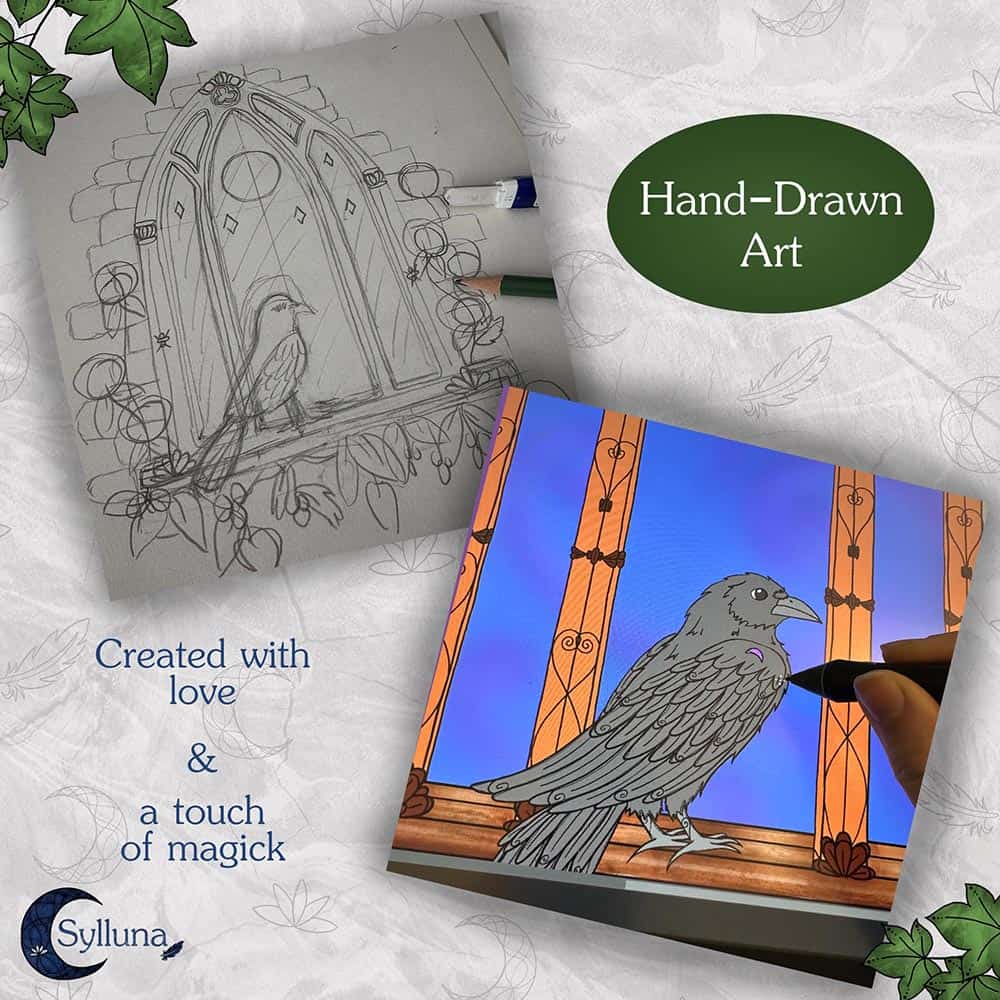 Interchangeable Bag Flap | Magic of the Raven € 23,50 - € 28,95 Do you already have a Sylluna bag? Thanks to the strong Velcro system, the flaps are easy to attach and swap. This allows you to give your bag a completely new look in no time. The bags are known for their durability and are built to last for years, so you can endlessly mix and match different designs from the collection. With these detachable bag flaps, you can carry a different touch of magic with you each time. They are available in various sizes to fit Sylluna’s bags. PLEASE NOTE: This concerns a separate bag flap. The base bag is not included. SHIPPING: 3-5 workdays SPECIFICATIONS: Brand: Sylluna®. Bag flap featuring a hand-drawn illustration print. The bag flap is available in various sizes. Attach, remove, and swap them easily using strong Velcro. Professional print using high-quality printing techniques. The print is waterproof. The bag flap is made in the Netherlands. Detailed description Choose your bag model Choose an optionBag Flap – BackpackBag Flap – Rectangle LargeBag Flap – Rectangle SmallBag Flap – Square LargeBag Flap – Square SmallClear Interchangeable Bag Flap | Magic of the Raven quantity Add to cart SKU: FLAP-0135-01 Categories: Interchangeable Bag Flaps Tags: Animal Magick, Magick of the Raven Illustration Beschrijving With these interchangeable flaps, you can endlessly mix and match the designs of Sylluna bags. Keeping the environment in mind, we understand that it’s not ideal to own multiple bags in the same size. We also know it’s fun to give your bag a completely new look. That’s why we offer our designs as separate flaps, reducing the additional carbon footprint. It’s also more convenient, as you don’t have to move your belongings from one bag to another. Which size do I need? Square Small: 18 x 19 x 5 cm (7.1 x 7.5 x 2.0 in) These flaps are suitable for the Square Small Shoulder Bags. Square Large: 25 x 26 x 6 cm (9.8 x 10.2 x 2.4 in) These flaps are suitable for the Large Square Shoulder Bags. Rectangle Small: 34 x 20 x 8 cm (13.4 x 7.9 x 3.1 in) These flaps are suitable for the Small Rectangle Shoulder Bags. Rectangle Large: 40 x 28 x 10 cm (15.7 x 11.0 x 3.9 in) These flaps are suitable for the Large Rectangle Shoulder Bags. Backpack: The flaps for the backpacks come in one size and are universally compatible with all backpacks. ABOUT THE DESIGN All Sylluna illustrations are hand-drawn and inspired by fantasy, nature, and magic. The illustration was first sketched and then digitally colored. Analog textures were used in the process, including hand-made marbled paper. ✦ View more magical products featuring this illustration Actual colors may vary slightly due to different screen settings. Sylluna®